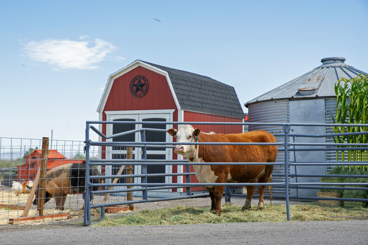 The culprits behind this agriculturally-themed pop up? Traeger Grills! The iconic grilling brand developed a miniature farm just off the eastbound side of I-80 of this scenic stretch of highway featuring the ultimate farm-to-table setup. This isn’t just an ordinary picnic table and grill stand either. This unique setup has all of the makings of an epic farm-to-table cookout, complete with a chicken coop, barn, tractor, hay and soon-to-be farm-to-table ingredients for a delicious organic meal: a cow, pig, chickens and corn stalks.